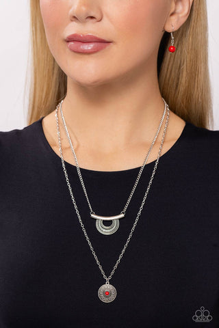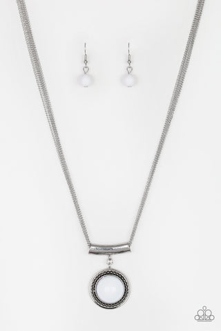 Half of My Heart - White - Rhinestone Embossed Tiered Paparazzi Short Necklace