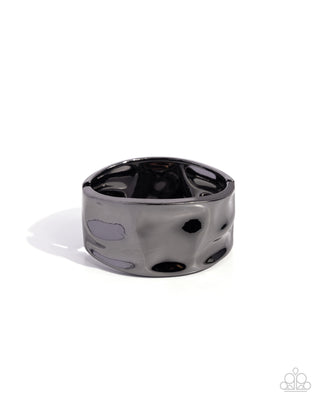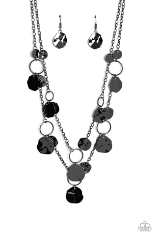 Hammered Horizons - Black - Gunmetal Asymmetrical Disc Tiered Paparazzi Short Necklace