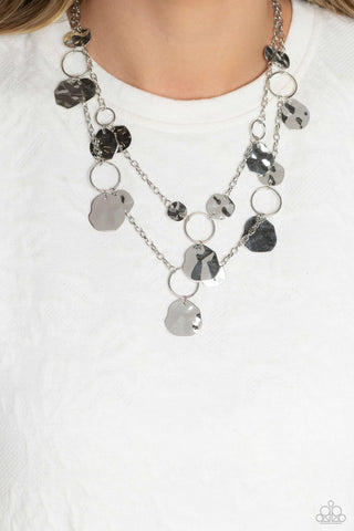 Hammered Horizons - Silver - Asymmetrical Disc Tiered Paparazzi Short Necklace