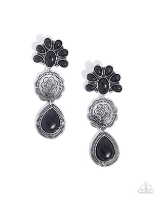 Handcrafted Hero - Black - and Turquoise Stone Silver Hoop Paparazzi Post Earrings