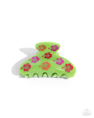 Hawaiian Harmony - Green - Red, Orange, Pink Hibiscus Flower Paparazzi Claw Hair Clip
