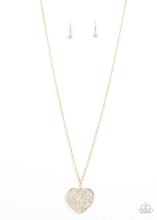 Have to Learn the HEART Way - White - Rhinestone Encrusted Heart Paparazzi Long Necklace