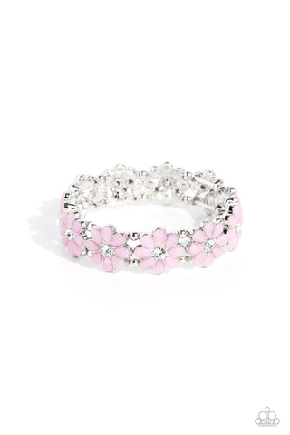 Hawaiian Holiday - Pink - White Rhinestone Center Flower Paparazzi Stretchy Bracelet