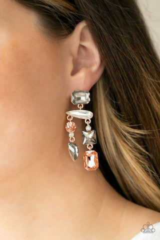 Headfirst Heart - Green - and Pink Seed Bead White Rhinestone Paparazzi Post Earrings