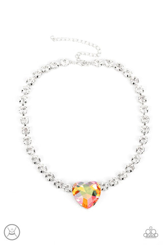 HEART Of The Movement - Green - Opalescent Acrylic Heart Paparazzi Short Necklace