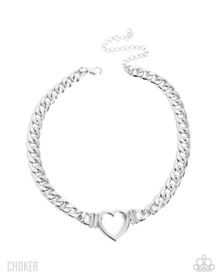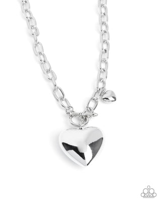 Heartbroken Bling - White - Rhinestone Encrusted Magnetic Heart Paparazzi Short Necklace