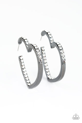 Heartfelt Haute - White - Painted Heart Frame Iridescent Gem Paparazzi Post Earrings