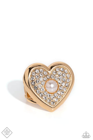 Heartbreakingly Blingy - Gold - White Rhinestone Encrusted Paparazzi Short Necklace