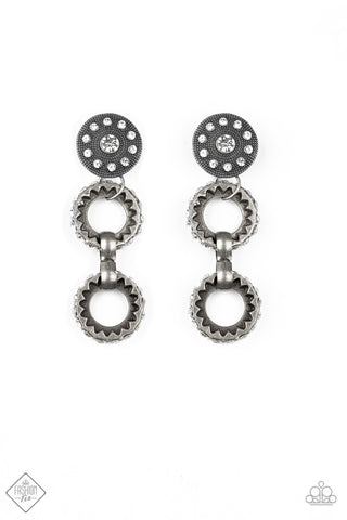 High Society Stunner - Black - Hammered Gunmetal Hoop Paparazzi Fishhook Earrings