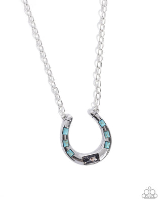 Horseshoe Hoedown - Red - Asymmetrical Stone Silver Horseshoe Paparazzi Long Necklace