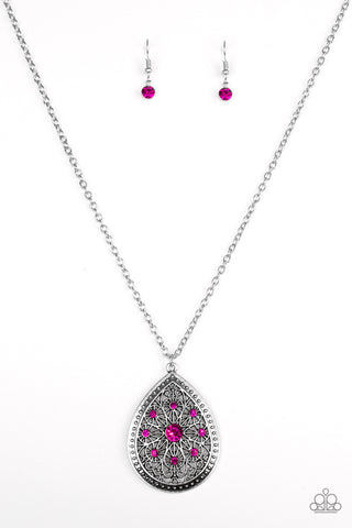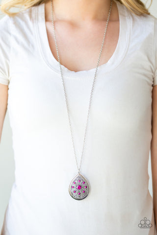 Hypnotic Headliner - Pink - Oversized Teardrop Cat's Eye Stone Paparazzi Long Necklace