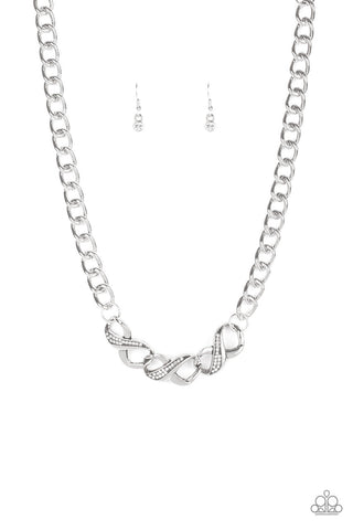 Infinitely Icy - White - Iridescent Rhinestone Twisty Y Paparazzi Short Necklace