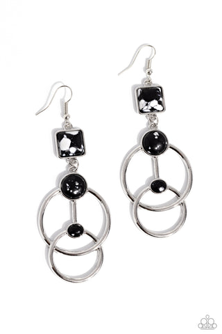 Interlocked Influence - Black - Marbled Stone Silver Ring Paparazzi Fishhook Earrings
