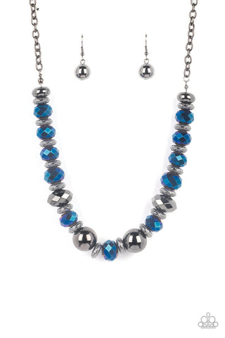 Interstellar Influencer Blue Iridescent Gunmetal Bead Paparazzi Short Necklace