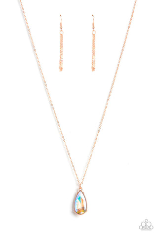 Interstellar Ice - Copper - Metallic Brown and Oil Spill Paparazzi Short Necklace