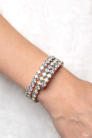 Iridescent Illusions - Multi - White Bubbly Iridescent Beads Paparazzi Stretchy Bracelet