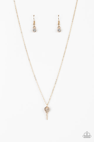 Keep Them in Suspense - Gold - White Iridescent Acrylic Flower Paparazzi Post Earrings