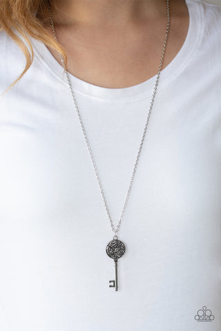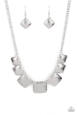 Key LAYER - Silver - Tiered Snake and Herringbone Chain Paparazzi Short Necklace