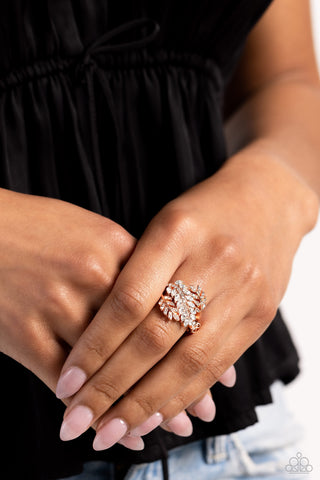LEAF Home - Orange - Marquise Cut Cat's Eye Stone White Rhinestone Paparazzi Ring