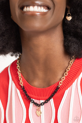 Locked and Loved - Black - Gold Painted Chain Heart Lock Paparazzi Toggle Bracelet