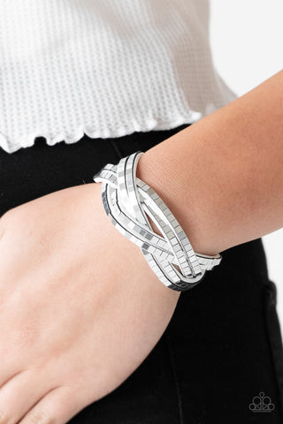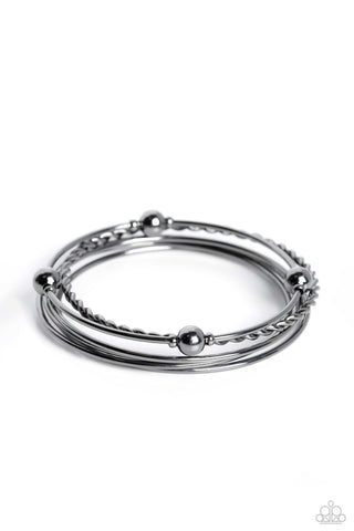 Lost and Found - Black - Gunmetal Braided and Beaded Paparazzi Bangle Bracelet