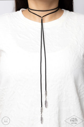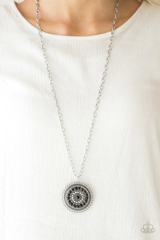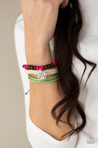 Loom Zoom - Black - Black Leather Wooden Bead Textile Paparazzi Pull-Cord Bracelet