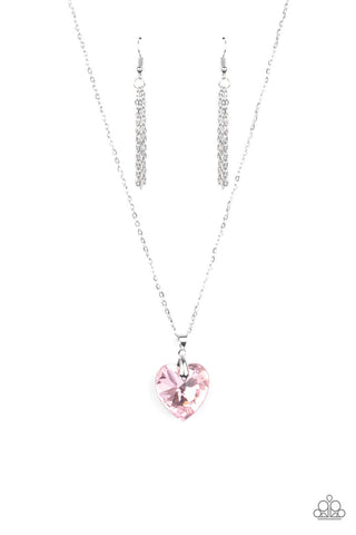 Love Hurts - Multi - Oil Spill Reversible Heart Paparazzi Short Necklace - Pink Diamond