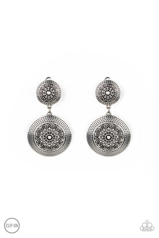 Magnate Moment - White Gemstone Silver Dollar Sign - Fishhook Paparazzi Earrings