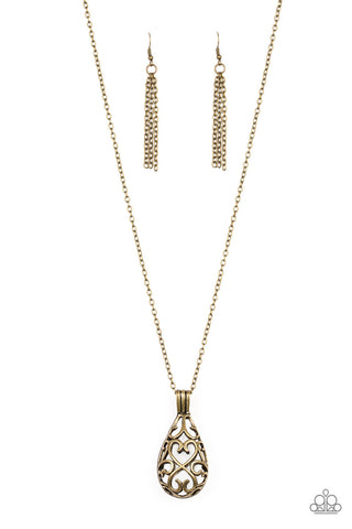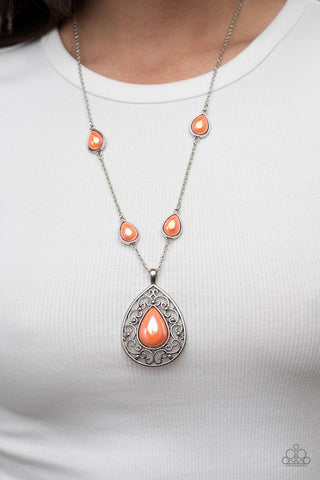 Magical Masquerade - Orange - Iridescent Pearl Teardrop Filigree Paparazzi Necklace