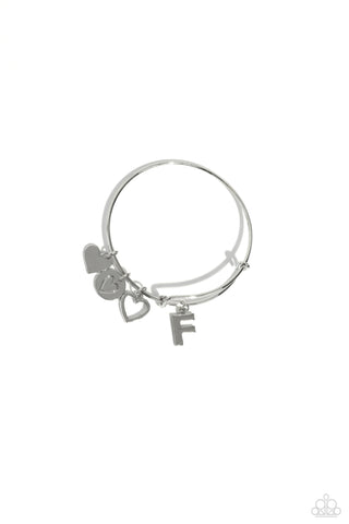 Making It INITIAL - Silver - F - Heart and Letter Charm Paparazzi Bangle Bracelet