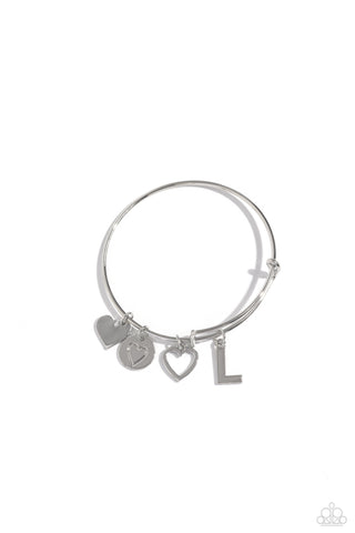 Making It INITIAL - Silver - L - Heart and Letter Charm Paparazzi Bangle Bracelet