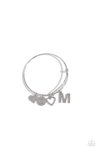 Making It INITIAL - Silver - M - Heart and Letter Charm Paparazzi Bangle Bracelet