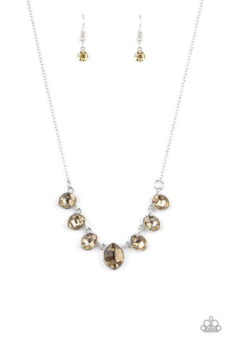 Match Made In HAUTE - Brown - Topaz Gem Gold Heart Tiered Paparazzi Short Necklace