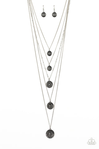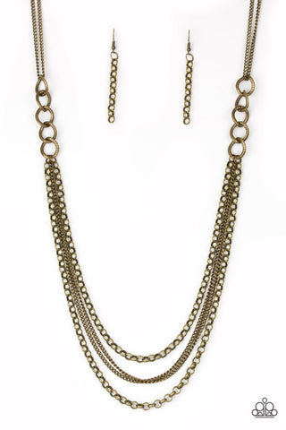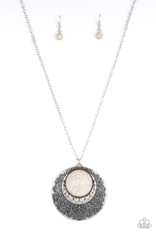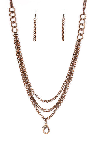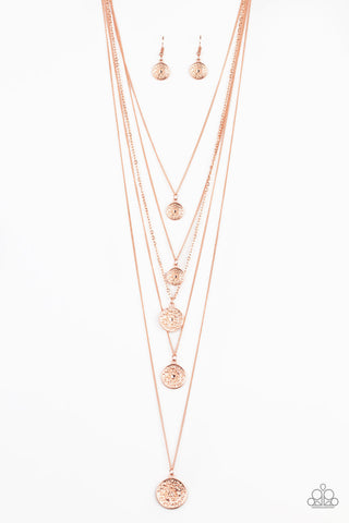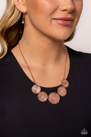 Medaled Mosaic - Copper - White Rhinestone Warped Textured Disc Paparazzi Short Necklace
