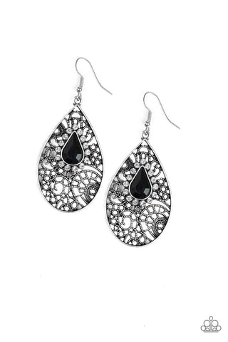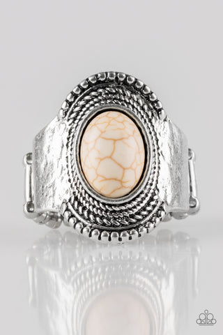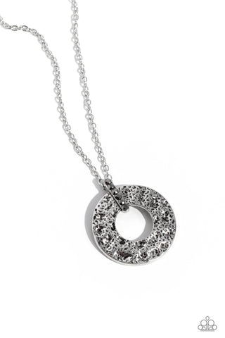 Modern Memento - Green - Rhinestone Hammered Silver Hoop Paparazzi Long Necklace