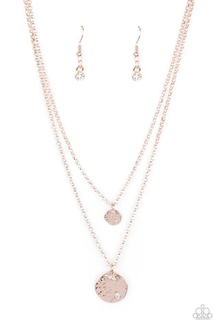 Modern Moonbeam - Rose Gold - Dainty Bead Moon Tiered Paparazzi Short Necklace