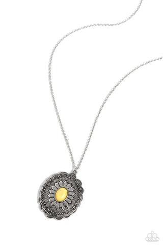 Mojave Medallion - Black - Oval Stone Silver Scalloped Pendant Paparazzi Necklace