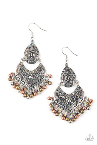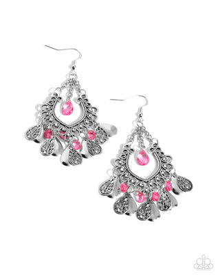 Musical Gardens - Pink - Teardrop Bead Filigree Frame Paparazzi Fishhook Earrings