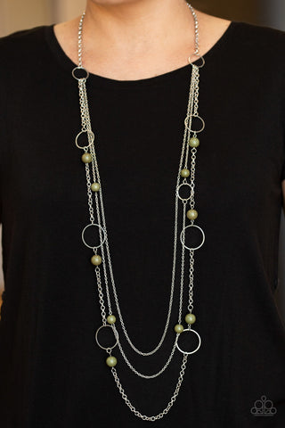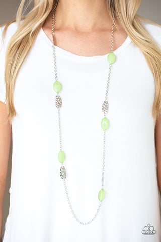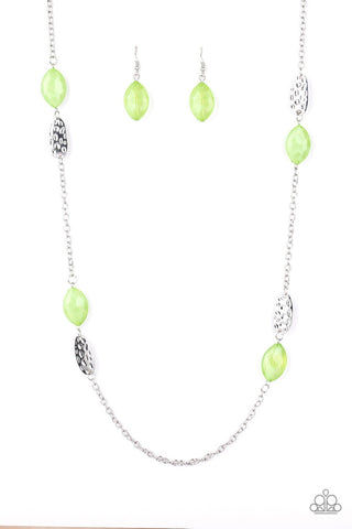 Beachy Beginner - Green - Stone, Wood, and Cat's Eye Bead Paparazzi Short Necklace