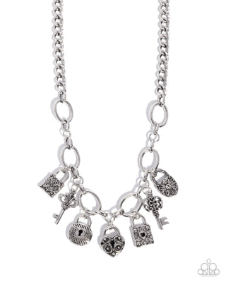 Padlock Possession - Pink - Gem Lock Herringbone Chain Tiered Paparazzi Short Necklace