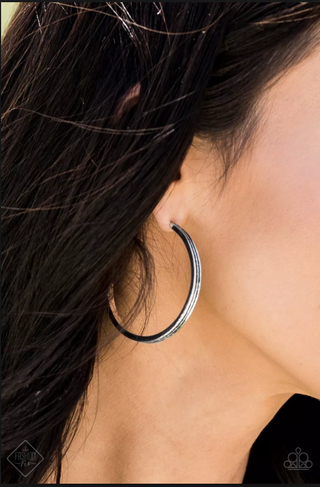 Resolutely Ruffled - White - Paparazzi Hoop Earrings - November 2023 Fiercely 5th Avenue