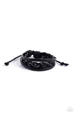 Roaming Rover - Black - Suede Cord and Silver Chain Urban Paparazzi Pull-Cord Bracelet
