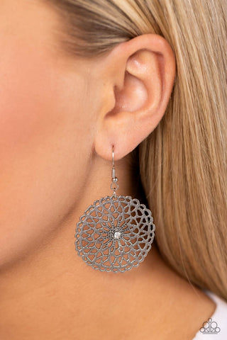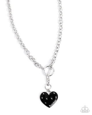 Romantic Gesture - Pink - Rhinestone Encrusted Heart Silver Bow Paparazzi Short Necklace