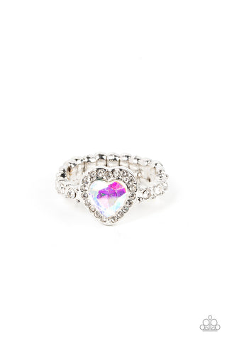 Romantic Retreat - White - Rhinestone Heart Dainty Pendant Paparazzi Short Necklace