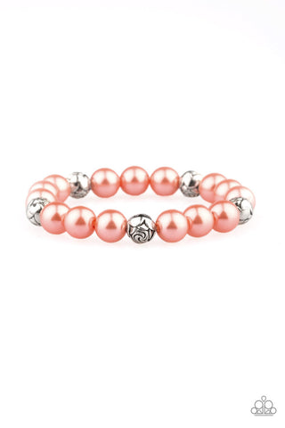 Rosy Retrospection - Yellow - Beaded Flower and White Pearl Paparazzi Stretchy Bracelet
