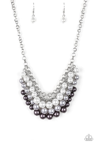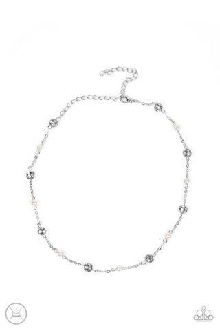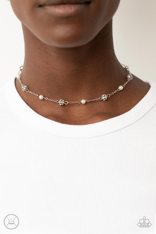 Rumored Romance - White - Pearl and Rhinestone Beaded Silver Paparazzi Choker Necklace