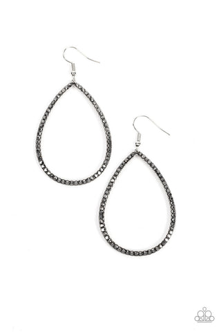 Black Tie Optional - Silver - Hematite Rhinestone Teardrop Paparazzi Fishhook Earrings