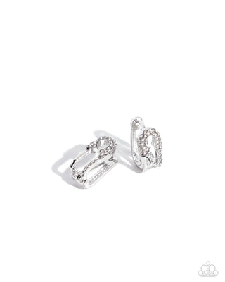 Safety Pin Sentiment - White - Rhinestone Encrusted Paparazzi Drop Hoop Earrings
