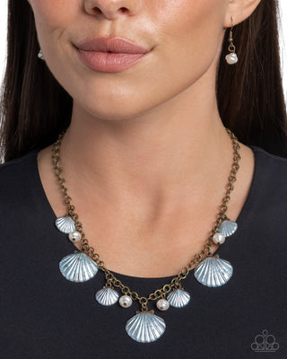 Seahorse Sailor - Copper - Blue and Iridescent Rhinestone Paparazzi Short Necklace
