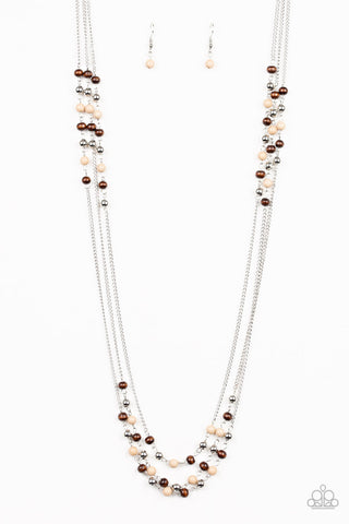 Secret Cottage - Brown - Flower Pendant with Pearl Chain Paparazzi Long Necklace